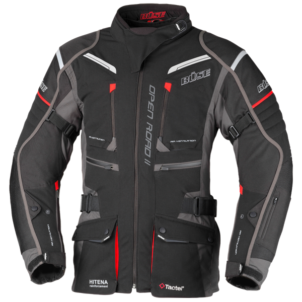 De Büse Open Road II Motorcycle Jacket is een echte blikvanger! Design en functionaliteit gaan hier hand in hand. Weerbestendig maar toch goed geventileerd, net zoals het weer dat vereist. Leverbaar in zowel dames- als herenuitvoering in verschillende kleuren. Zeer veel maten beschikbaar: 34 t/m 58, ook zijn er extra lange maten en extra korte maten verkrijgbaar!