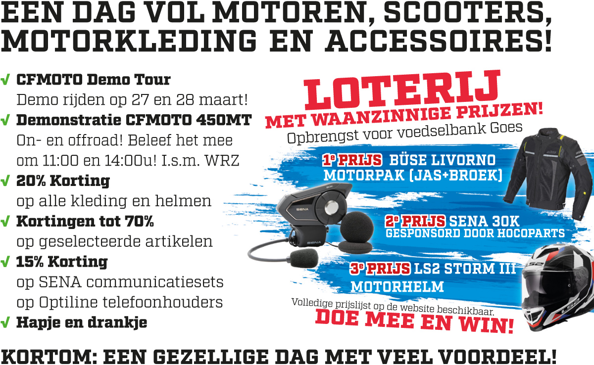 Eind maart is het weer zover, onze jaarlijkse voorjaarsshow! Dit betekend een dag vol gezelligheid, een hapje en een drankje, en natuurlijk heel veel motoren maar ook brommers en scooters!